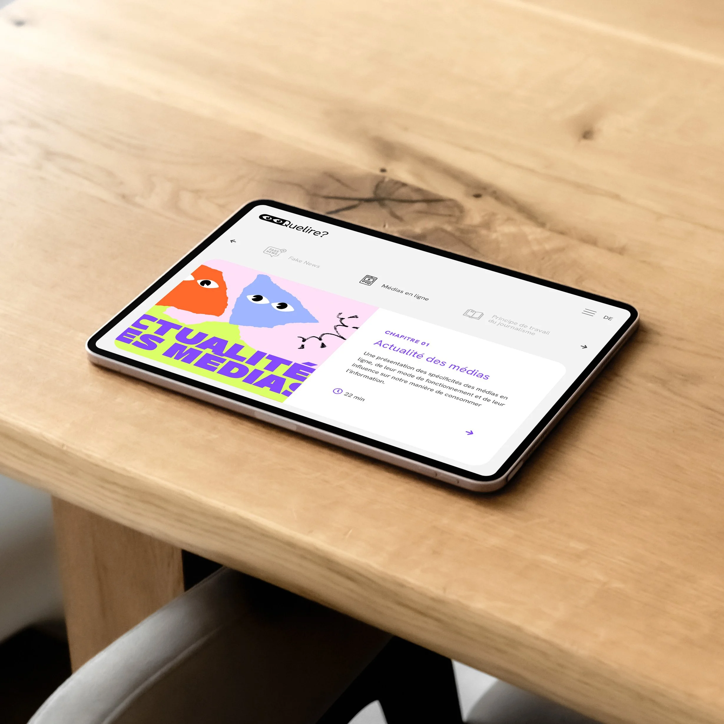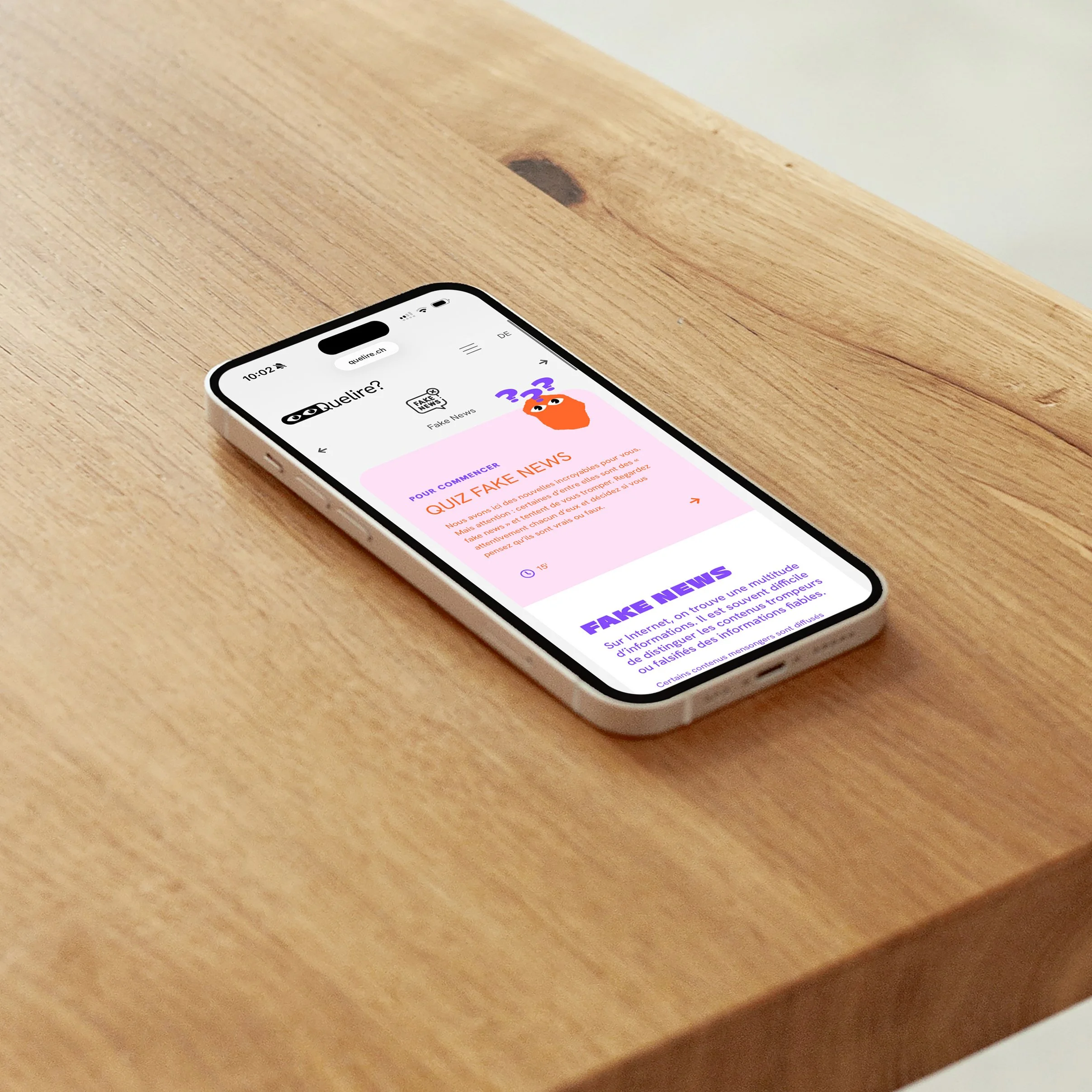Spurring a accompagné Médias Suisses dans l’adaptation romande de la plateforme pédagogique Was lese ich?, à travers la création du naming Quelire?, le développement de son identité visuelle ainsi que le design de la plateforme et de ses supports pédagogiques, afin d’apporter une cohérence conceptuelle et graphique globale.
